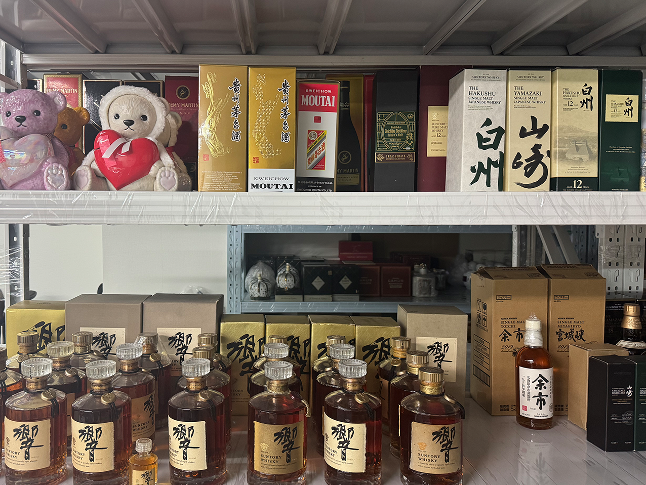 本社では、日本ウイスキー、フレンチコニャック(ブランデー)、中国茅台酒を中心に、非常に豊富な洋酒・古酒コレクションを取り揃えております。お気軽にお問い合わせください。